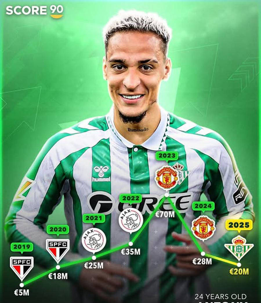 贝蒂斯在球队除了过去乏善可陈的安东尼之外,安东尼穿上贝蒂斯球衣后展现出了强大实力,成为了球队最受欢迎的球员,甚至球衣销售量超过了前皇马明星伊斯科。但是,他的租借合同中没有包括买断条款,所以贝蒂斯需要与曼联进行谈判才有机会完成永久转会交易。据英媒报道,曼联希望收到4000万欧元的转会费。